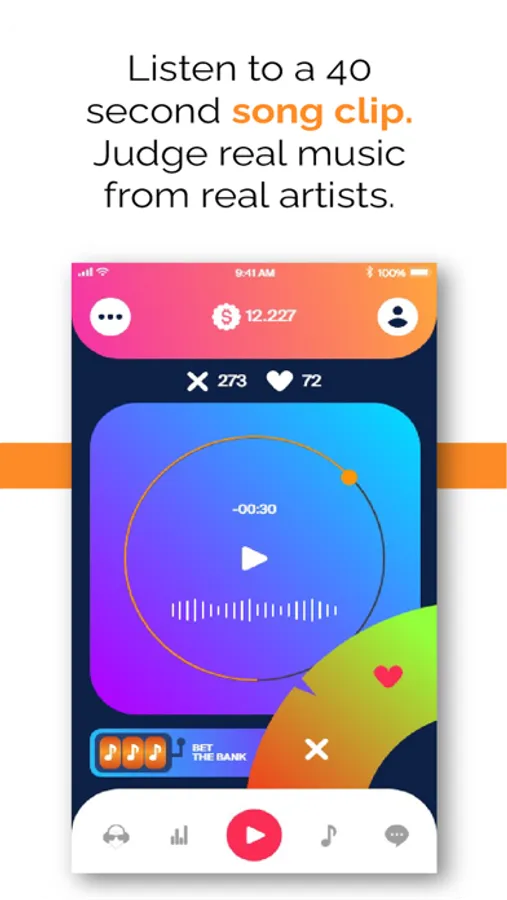 Music fans, do you really have good taste in music? Can you really judge what a hit song sounds like? Do you have what it takes to be a music mogul? Join this app and put your skills to the test.