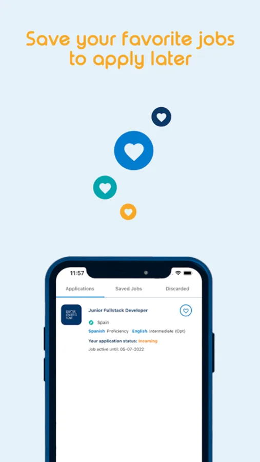 Swipe right to easily apply to job offers you find attractive. Yes, it is as easy as online dating. Swipe left to discard the vacancies you are not interested in. And don’t worry, you can always go to the “Discarded” menu to review them again.