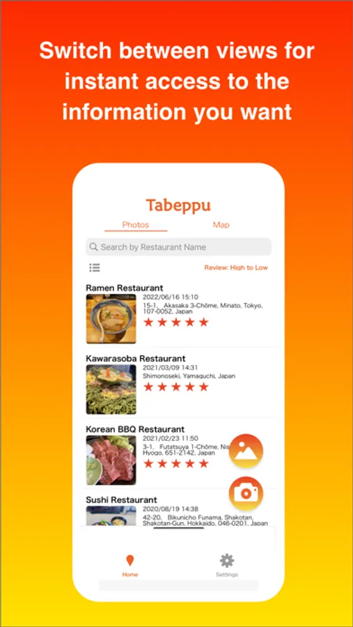 With Tabeppu, all you have to do is take a picture and it instantly records information about the restaurant where you ate!