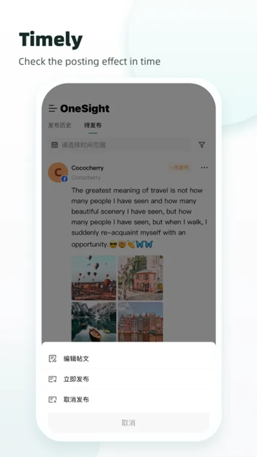Smart Posting: Support cross-platform, multi-account regular posting, easily solve the problem of cross-time difference operation; you can choose Facebook, Twitter, Instagram social accounts to edit content at the same time, and if you conduct overseas marketing, you can also modify the custom time zone on the web side. Time zone, to achieve a comprehensive operation experience across platforms, time zones, and accounts.