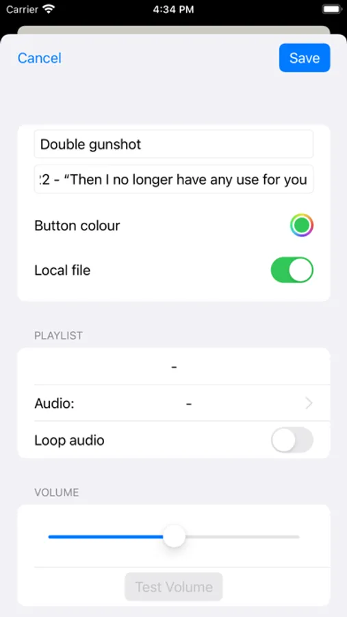Note that this app does not have a library of its own songs or music, but plays tracks and playlists that you have set up in the music app. If you have your own audio tracks (e.g. gunshots) or other audio files you can copy them into the iCloud Files app, and select them from there using the local file option.