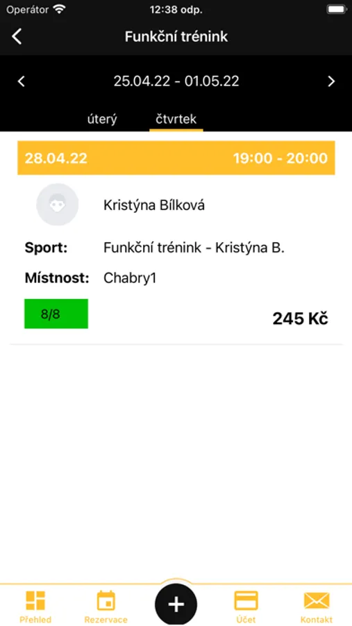 V aplikaci klient uvidí stav svého účtu, může si rezervovat skupinovou lekci nebo zakoupit nabízené služby.