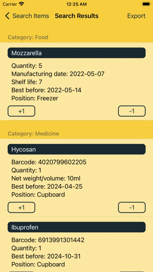 Simply input basic information like name, quantity, category, and where your stuff are stored. When you are in need of them, search by name, category or position. For items with best before dates, you may set up reminders, and the app will let you know when they are near expiry. Exporting search results to Excel spreadsheet is supported.