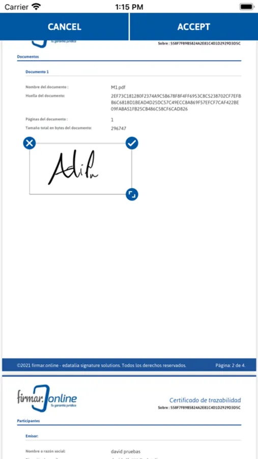 - No signature made is stored. The signatures are generated in each transaction, for the signing of a certain document by a certain person.