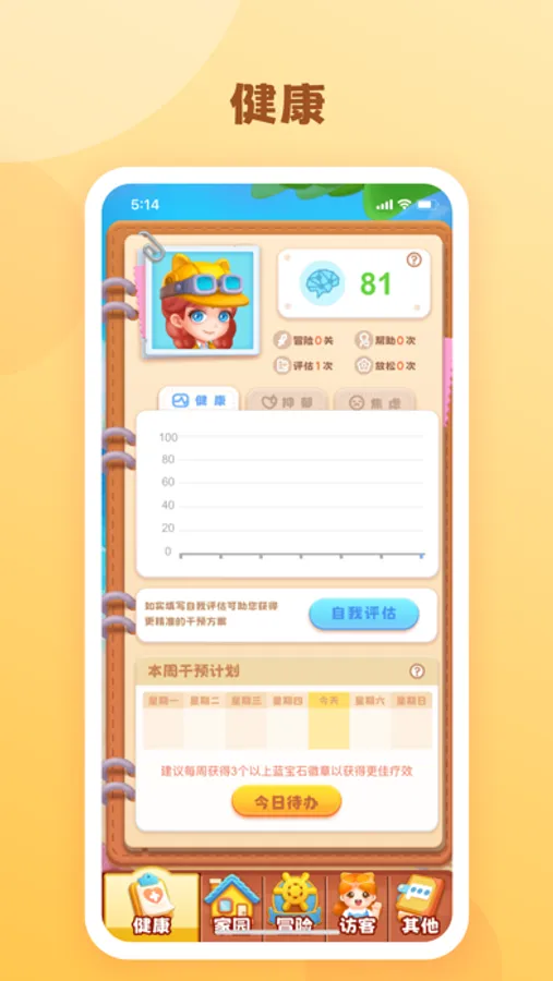干预:提供多种心理问题及情绪问题干预训练的小游戏,帮助用户提高心理健康水平和危险应对能力。