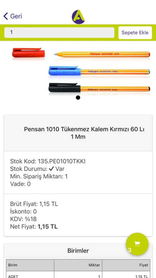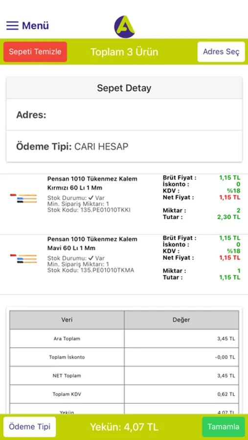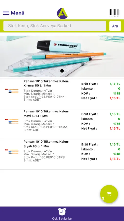 Aral Ofis Kırtasiye B2B Sisteminin Mobil Uygulaması.