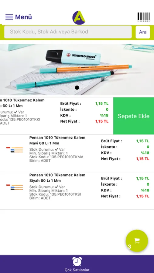- Stok Adından, Stok Kodundan ve Barkoddan Ürün Arama