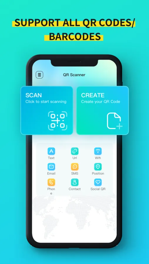 > It can scan and read all kinds of QR codes, including text, contact, email, product, SMS, URL, WiFi