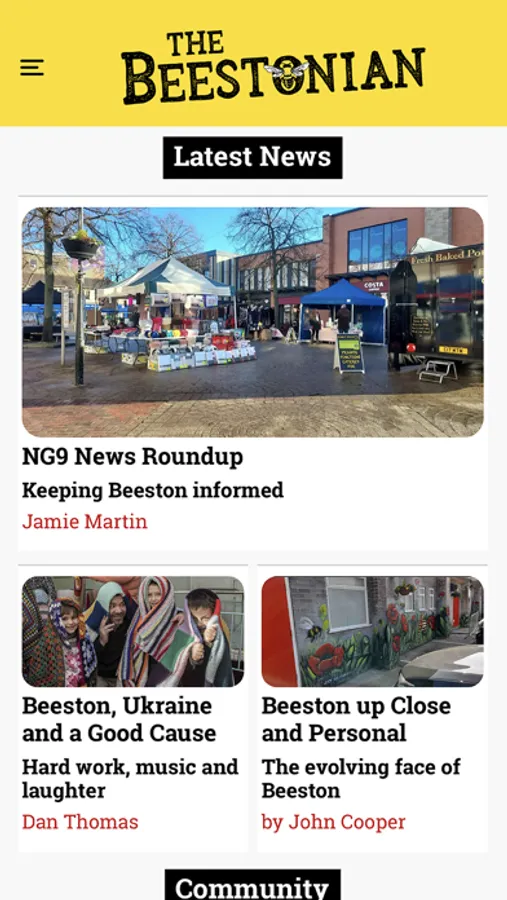 All the latest news, developments and events in Beeston, Nottingham for local residents and ex-pats, all written by local contributors (including the cartoons :-)). Keep up with what's going on wherever you may be, and if you've got a story to tell get in touch and let us know!