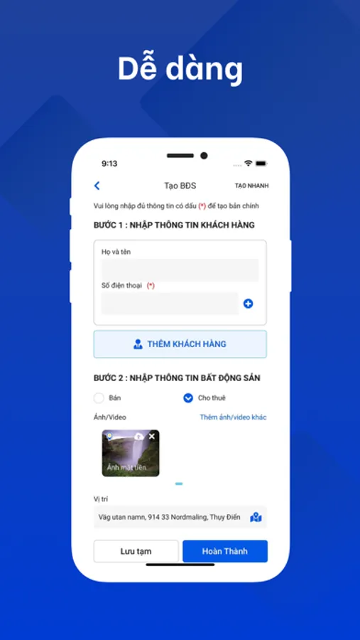 - Đăng thông tin bất động sản nhanh