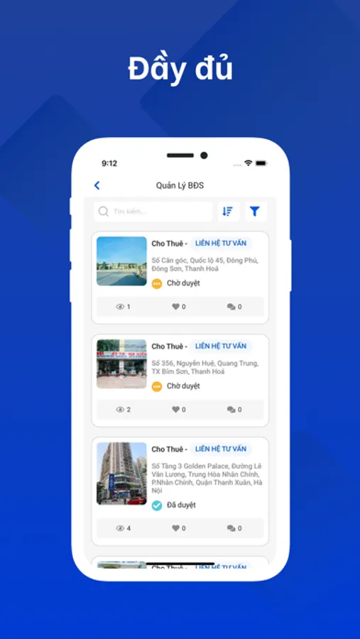 - Quản lý danh sách bất động sản đã đăng