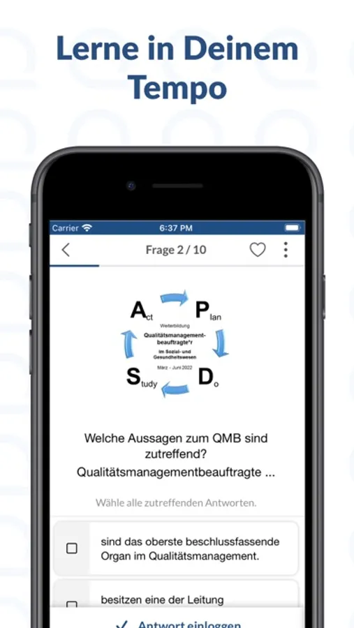 Mit der Lern App von QuizAcademy kannst Du Dein Wissen im Gesundheits- und Sozialwesen nachhaltig festigen und vertiefen. Wir bieten Dir in dieser Lern App alle wichtigen Prüfungsinhalte für die IHK Weiterbildung. Die Weiterbildung zum/r geprüften Fachwirt/in im Gesundheits- und Sozialwesen richtet sich an interessierte Führungs-, Fach- oder Nachwuchskräfte aus allen Bereichen des Gesundheits- und Sozialwesens, wie Mitarbeiter:innen in Krankenhäusern, Pflegeeinrichtungen, Sozialeinrichtungen, Krankenkassen sowie in der medizinischen Versorgung und Beratung. Sie ist für alle Berufstätigen mit einer kaufmännischen, verwaltenden, medizinischen oder handwerklichen Ausbildung im Gesundheits- und Sozialwesen geeignet, um entsprechende Fähigkeiten des mittleren Managements zu erwerben.