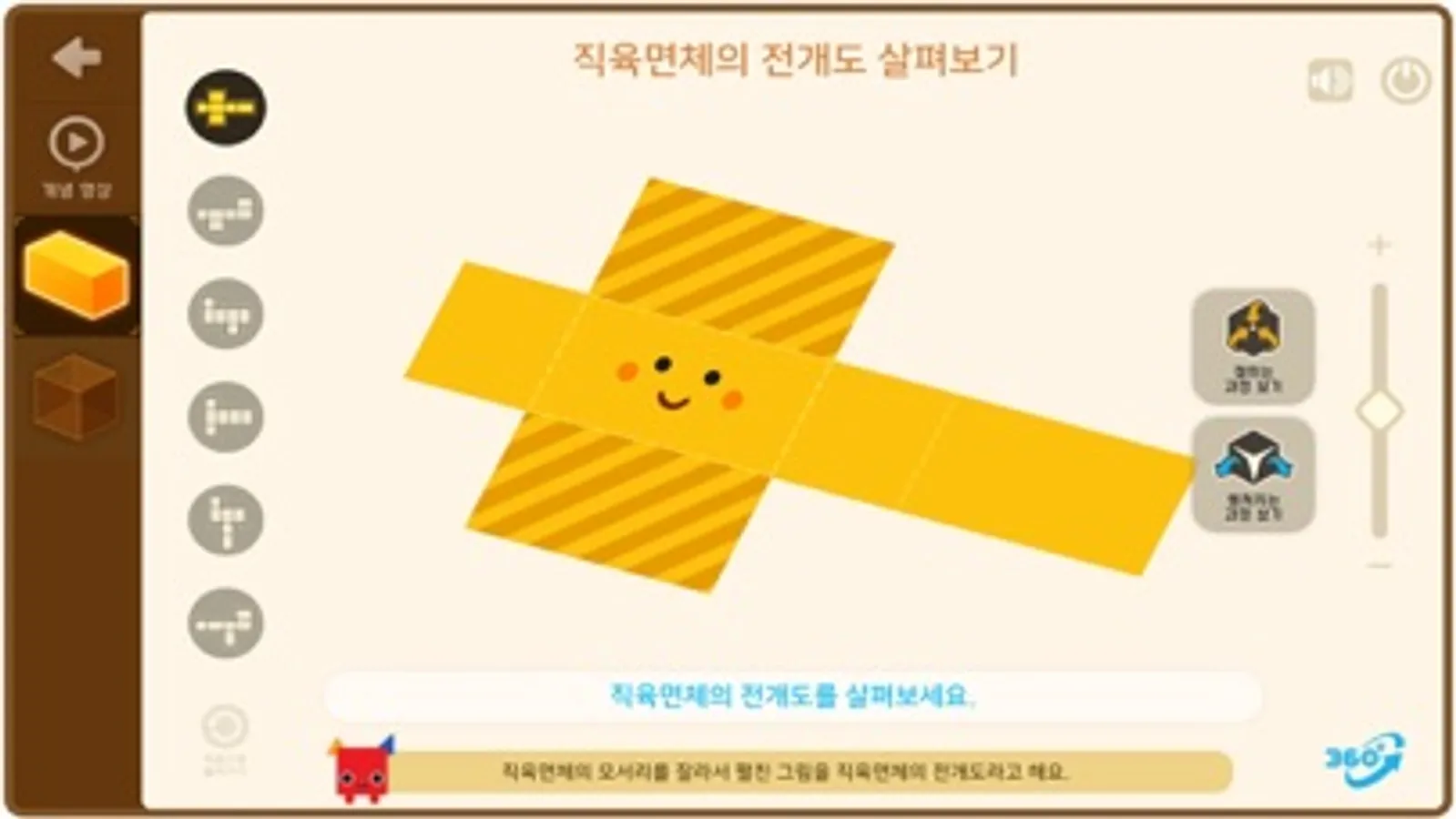 3. 각기둥, 원기둥의 전개도를 접고 펼치고 360도로 돌려 보며 다양한 전개도를 살펴볼 수 있어요.