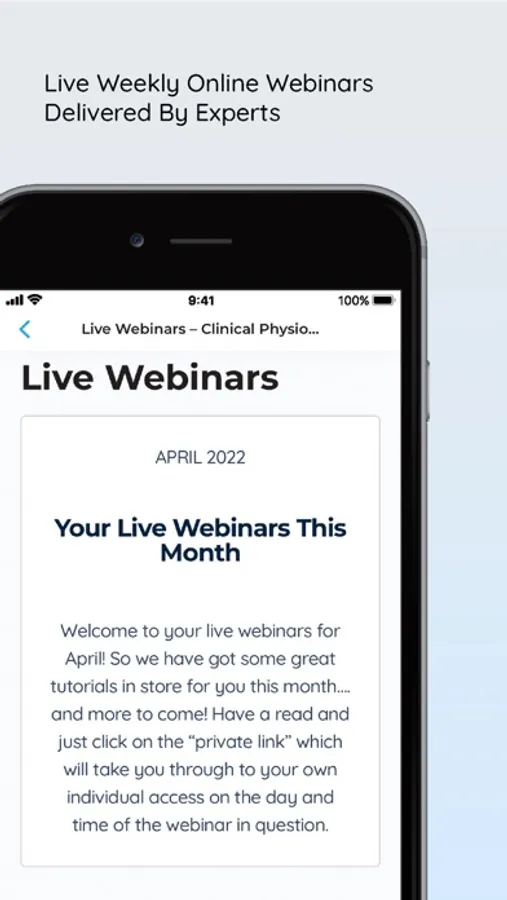 The Clinical Physio Membership App is a members-only app which provides access to world-class educators covering all physiotherapy specialities. Learn with our masterclass courses, on-demand webinars, live webinars, evidence-based best practice library of articles, listen to podcasts and watch our latest videos and connect with the clinical physio team of experts and physiotherapists world-wide to learn and develop your knowledge base.