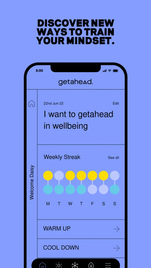 Designed to take a proactive stance on a reactive subject, getahead is here to enable a mindset routine that will improve people beyond their training. We all know the importance of warming up and cooling down physically. This routine is no different for mindset.