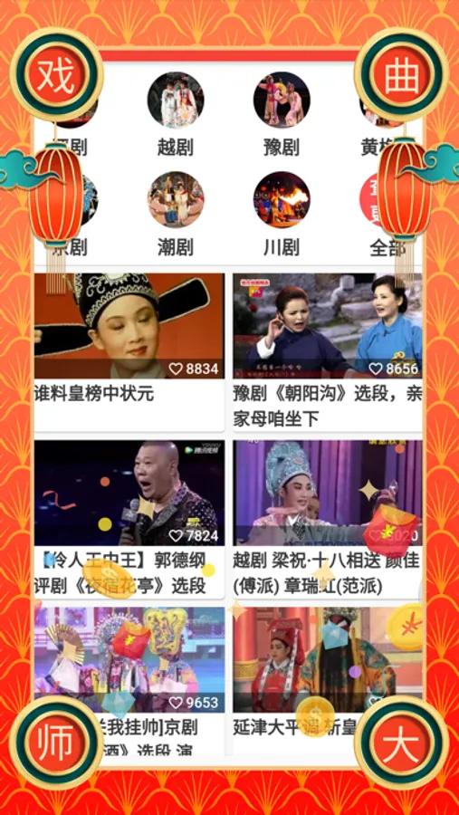 戏曲红歌老电影视频大全,流行热门DJ舞曲大全 健康养生、戏曲红歌的人气爆棚社区。 ● 中华戏曲,源远流长 从越剧,京剧,黄梅戏,豫剧,到昆曲,吕剧,莆仙戏,二人转,各地戏曲,应有尽有。 ● 名段名曲,历经岁月考验 听不厌的《女驸马》,听不厌的《梁山伯与祝英台》,听不厌的《牡丹亭》,《座山雕》,都是岁月流过、大师雕刻出的经典之作,值得反复聆听。 ● 贴心的附加生活健康小知识 最后针对我们的老年朋友,我们特地添加的生活中的一些健康生活小知识,让大家都有一个棒棒的好身体! ● 经典动听的戏曲红歌 经典老歌,曲艺荟萃,回味岁月的滋味,品听时间的沉淀。 京剧、搞笑二人转、豫剧、曲剧、等各种剧种,闲了看看,精神愉悦 戏曲大师——汇总人气超高的养生资讯,广受好评的烹饪教学,经典动听的戏曲红歌,你想要的这里都有! 戏曲红歌老电影相声小品视频大全 有空的时候为咱爸咱妈下载一个,时尚~时尚~超时尚~