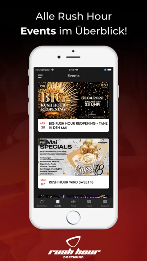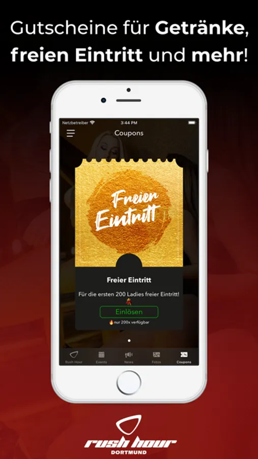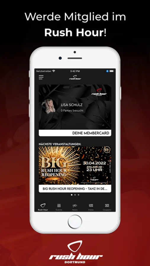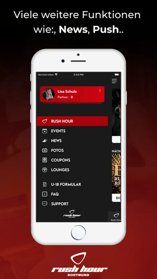 Lade dir unsere Rush Hour App und werde Mitglied im Rush Hour Dortmund.