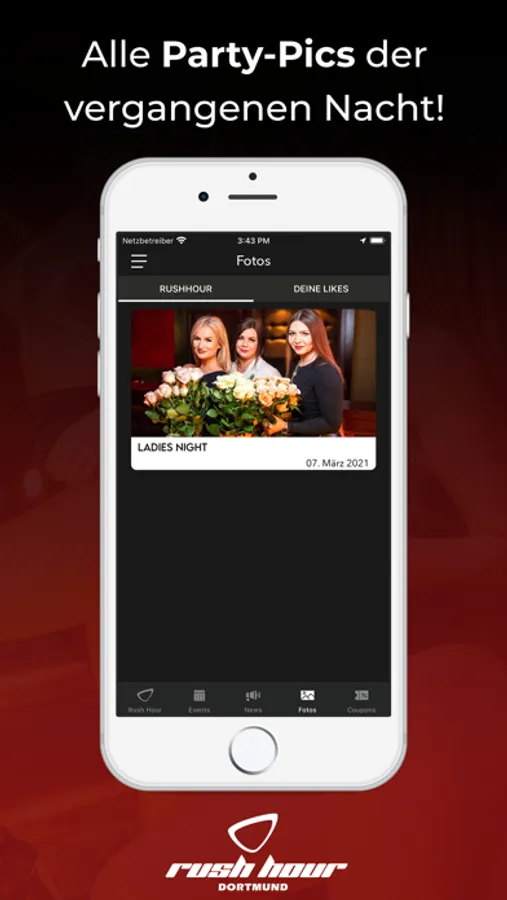 Du erfährst als erster, wann die nächste Party steigt und profitierst dabei noch von fetten Aktionen. Zum Event sparst du mit unseren Gutscheinen bares Geld. Damit du dich am Tag danach auch an den geilen Abend erinnern kannst, stellen wir alle Party-Pics in der App bereit.