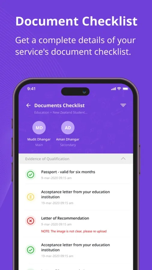 You can instantly check the ‘document list’ required in the process for a student visa, visitor visas, etc. Moreover, you can verify the submission of the documents as per the checklist and manage them in one go.