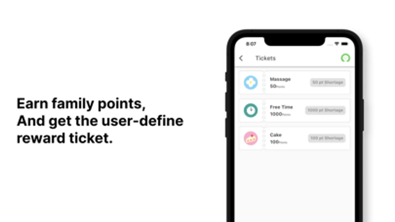 - Reward function. Family points can be earned when tasks are completed. Family points can be exchanged for reward tickets.