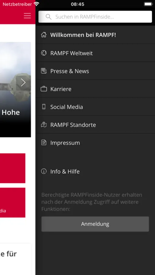 Mit der App RAMPFinside bleiben Sie jederzeit über die verschiedenen Standorte sowie die Produkte und Dienstleistungen informiert.