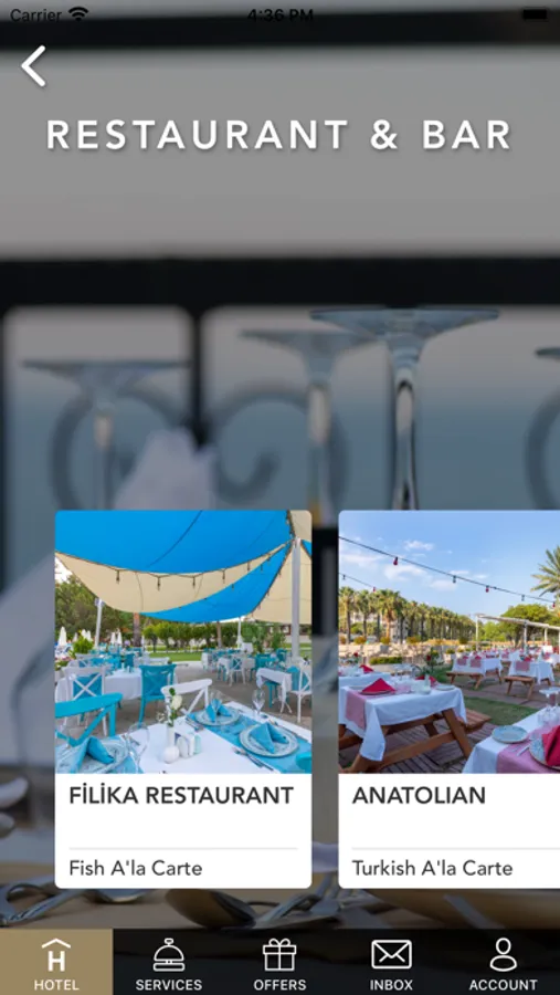 During your stay, you can benefit from SPA Reservation, Restaurant Reservation, Laundry, Housekeeping, Reporting Room Problems, Room Supplies, and Tray Collection services through the Amara Hotels mobile application. Even you can order food and beverages in your room and dine in the comfort of your home. Moreover, you can see and easily request the available offers on the Offers menu.