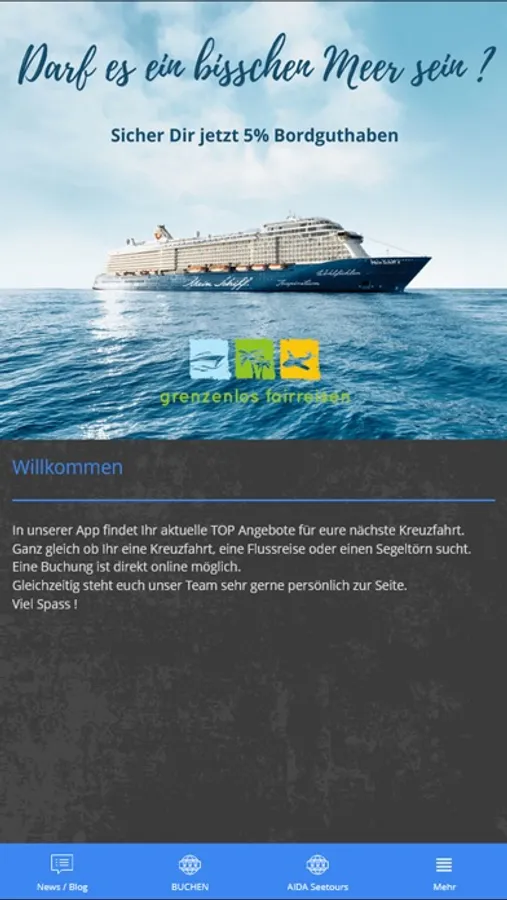 In unserer App findet Ihr aktuelle TOP Angebote für eure nächste Kreuzfahrt. Ganz gleich ob Ihr eine Kreuzfahrt, eine Flussreise oder einen Segeltörn sucht. Eine Buchung ist direkt online möglich. Gleichzeitig steht euch unser Team sehr gerne persönlich zur Seite. Viel Spass !