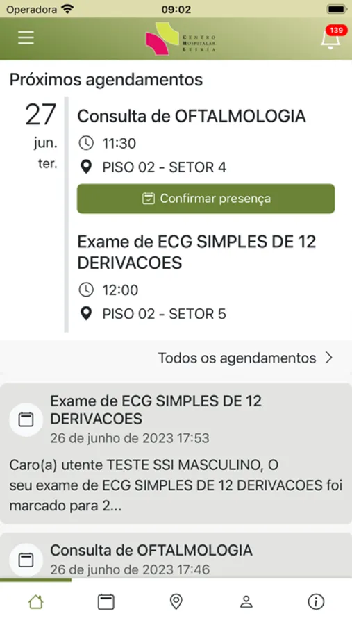 - Confirmação do estado do pedido de consulta e/ou exame;