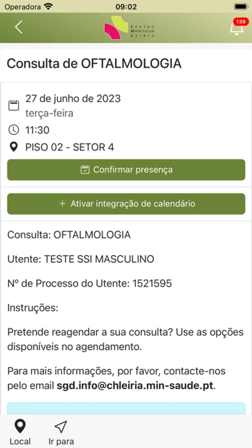 - Confirmação do estado do pedido de lista de espera cirúrgica;