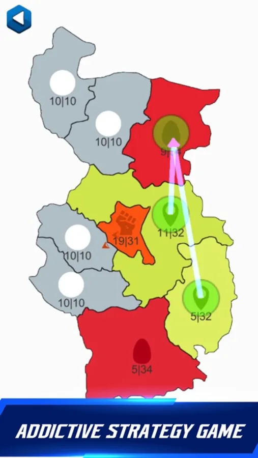 Control your tiny state and beat your rivals to grow your state! But watch out for states bigger than you will be trying to acquire your state. Survive and take over the world to become the hero in the state war game! This State War tactical clash of dots game is very easy to control and addictive to play. To acquire a state just slide your finger from your state to the enemy state and the fight will begin! Don't forget to upgrade your powers to create more arms and take over the world!