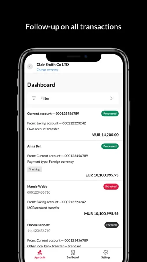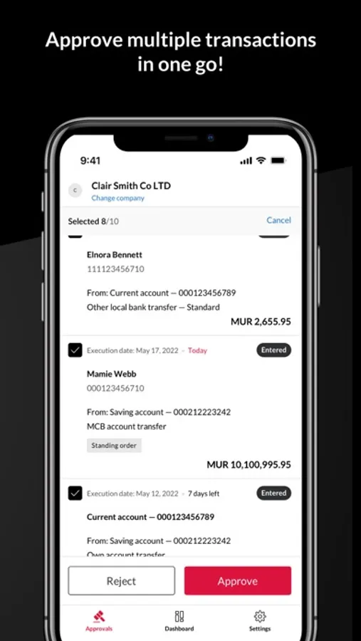 MCB's SmartApprove application allows corporate signatory users to authorise their transactions using transaction signing.