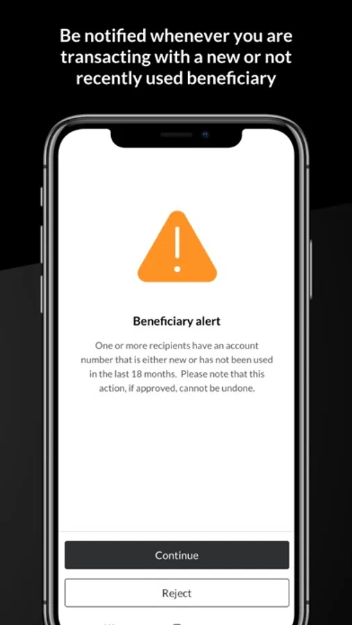 · Receive notifications when making a payment to a new beneficiary, or an existing one with new account details or a beneficiary to whom payments have not been made during the last 18 months