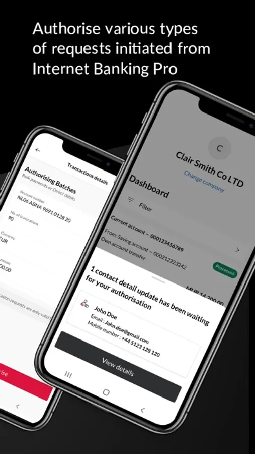You will be able to login and authorise your payments in a simple and secure way. The application has the below main features: