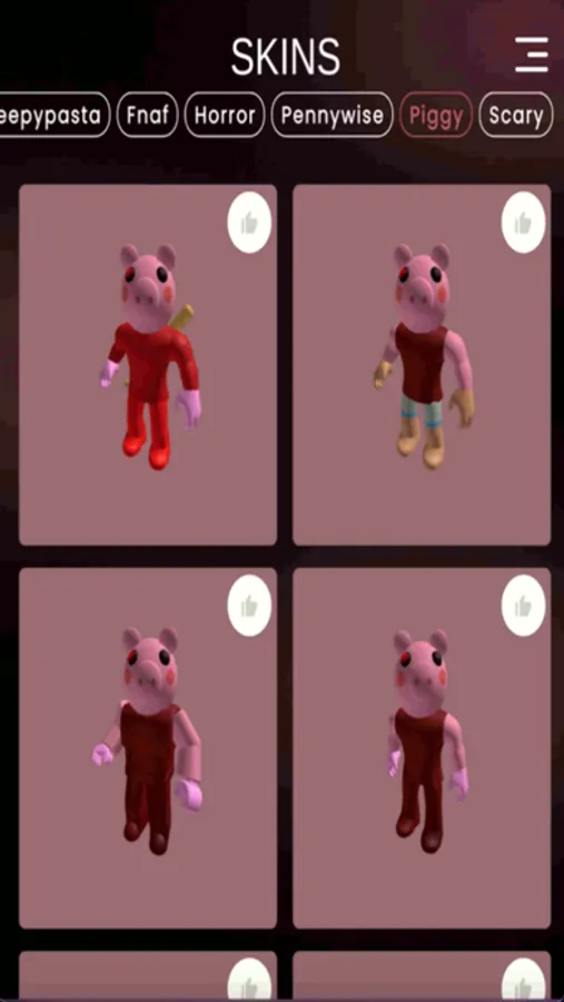 A collection of themed skins of favorite horror characters and an impressive multiplayer potential provide everything you need to play with users from all over the world. Skins for a haunted horror quest provide a unique opportunity to play as a crazed evil hero and plan an escape while being in a team of survivors. Choose who you want to be today - a killer or a victim. Use advanced functionality and experiment with choosing an image depending on the chosen plot. Suits and accessories are presented in the form of a convenient list with popular categories, as well as the possibility of preview and instant 3D fitting.