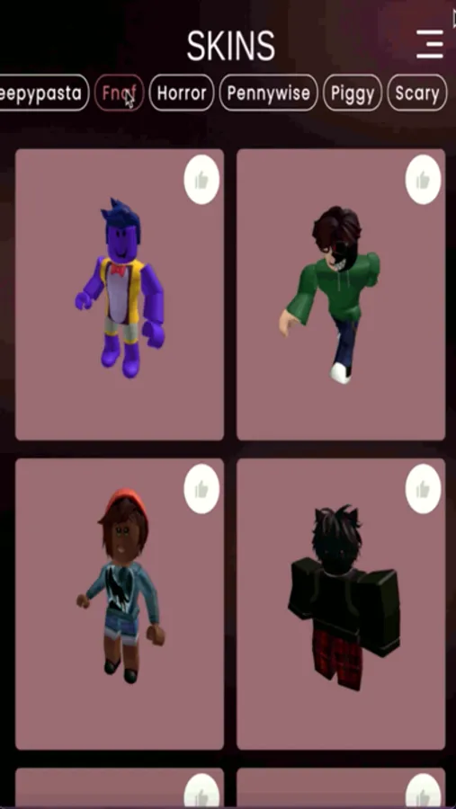 Horror Skins Mods for Roblox DISCLAIMER: The important thing is that this is an unofficial Roblox app. All files available for download in this application are provided under the terms of the free distribution license. If you believe that we have violated your property rights or any other agreement, please contact us by email and we will immediately take the necessary action. All rights reserved. According to https://en.help.roblox.com/hc/en-us/articles/115004630823