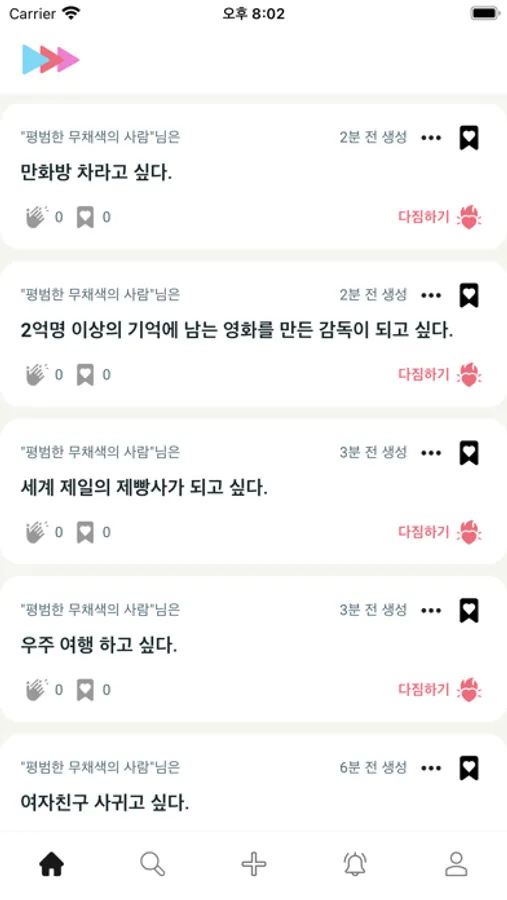 4. 익명으로 스토리 공유하기, 다른 사람의 꿈을 구경하고 응원해주세요.