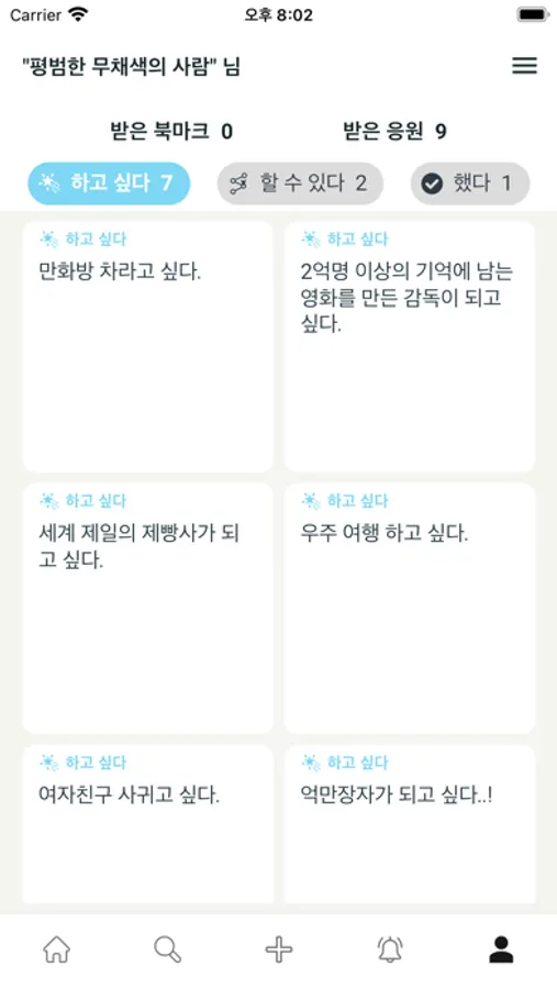 각자가 적은 모든 버킷리스트와 각각의 스토리는 익명으로 공유되어요.