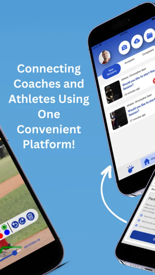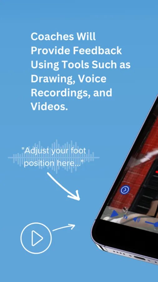 - Receive feedback from a coach in the form of messages, voice notes, and interactive drawings.