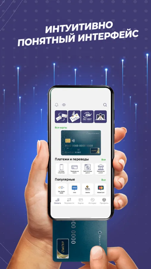Настраивайте мобильное приложение под свои запросы, создавайте список избранных направление товаров и услуг, добавляйте несколько карт в аккаунт, выгодно пополняйте и оплачивайте с помощью электронных кошельков.