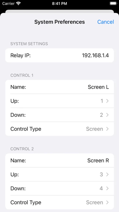 This app (with network relay) will allow you to control 2 power stands, two screens, or screen and stand. The required network relay (not included) from ControlByWeb.com will work with this app on the same network. As long as you have a power microphone stand that requires Direct Current (DC) to operate, you can connect the stand using it's own power supply, or use the recommended 12v 2.0a power supply (not included). The electronic projection screen control will replace the hardwired control. Make sure the relays are connected to the correct pins on the electronic projection screen. The app is free to use except will not save settings. Once you test out the app, you may purchase the ability to save your settings.