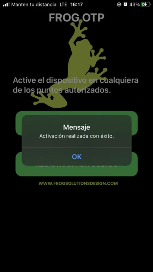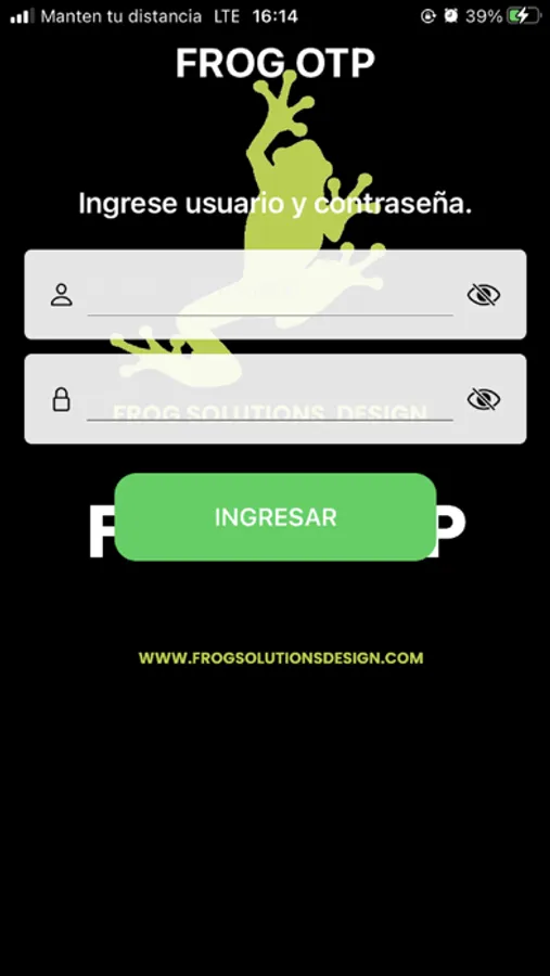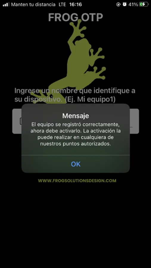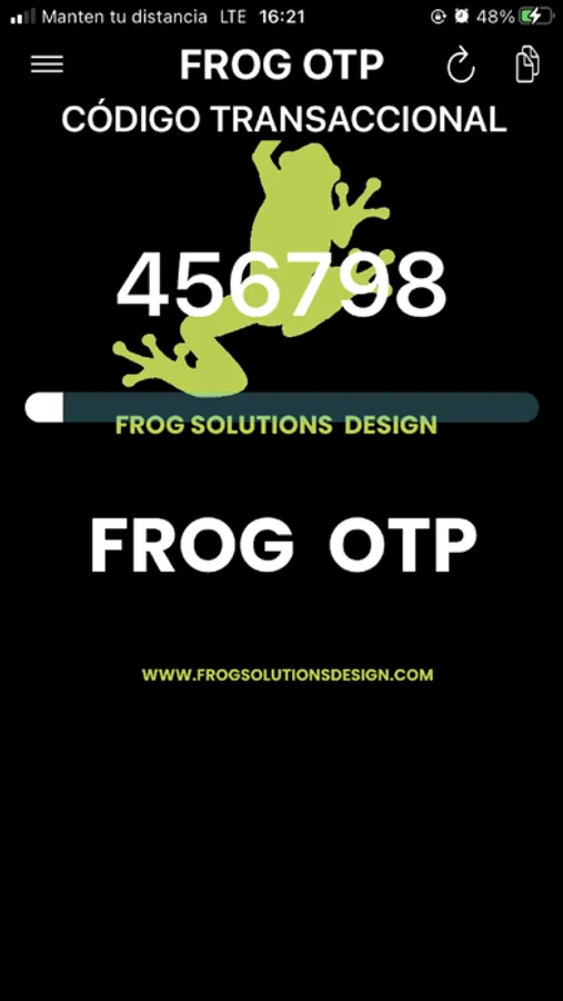 Aplicación para la generación de identidades y activaciones por Token de seguridad de acceso de un solo uso para diferentes organizaciones que utilicen la plataforma FrogOtp para una autenticación segura.