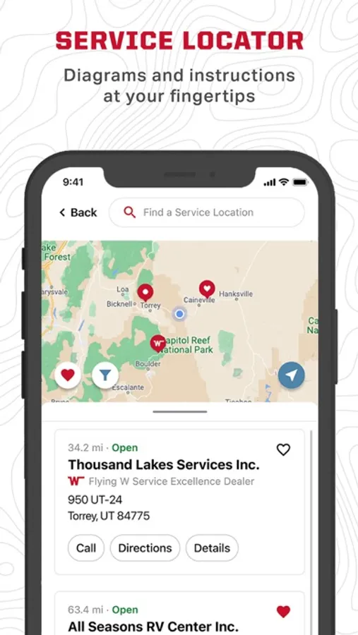 If you need parts or service on your travels, find the nearest Winnebago dealer from your location or along your route with just a few taps.