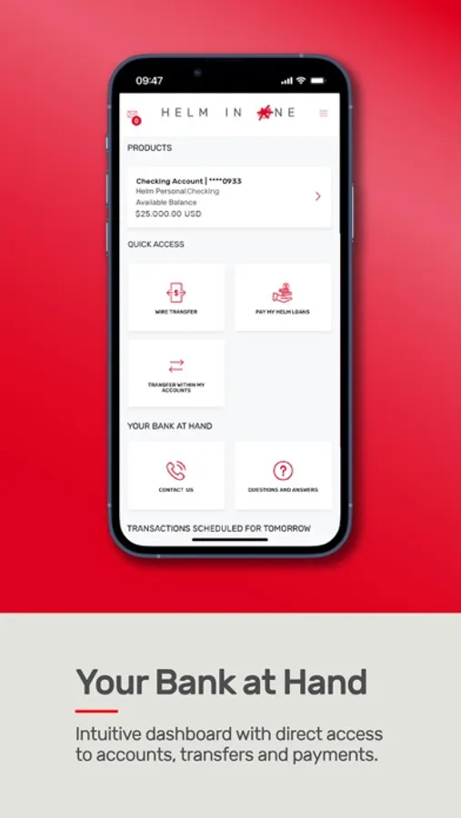 Introducing our HelmInOne Personal Mobile Banking app, the secure and convenient way to manage your accounts on-the-go. Designed with your security in mind, this app allows you to easily perform and approve transactions, pay bills, transfer funds between your Helm accounts, send money to friends and family, and set-up your Touch ID or Face ID recognition for simple and secure access. Additionally, you can now protect your online transactions by registering a security code on your mobile device.