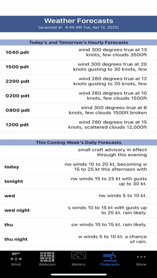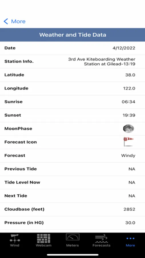This application is used to monitor kiteboarding and sailboarding conditions at 3rd Avenue in Foster City, California. It will be of limited value to anyone outside of the community. It combines 4 types of information: (1) weather dials, particularly for wind speed and direction but there are others, (2) the same webcam imagery as on the website, (3) forecasted conditions, and (4) tide information at San Mateo Bridge West End. Wind information is updated several times a minute. There is also an iPad and Apple Watch interface.