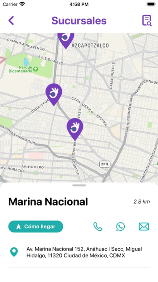 • Encuentra tus sucursales más cercanas, utilizando tu ubicación en el mapa.