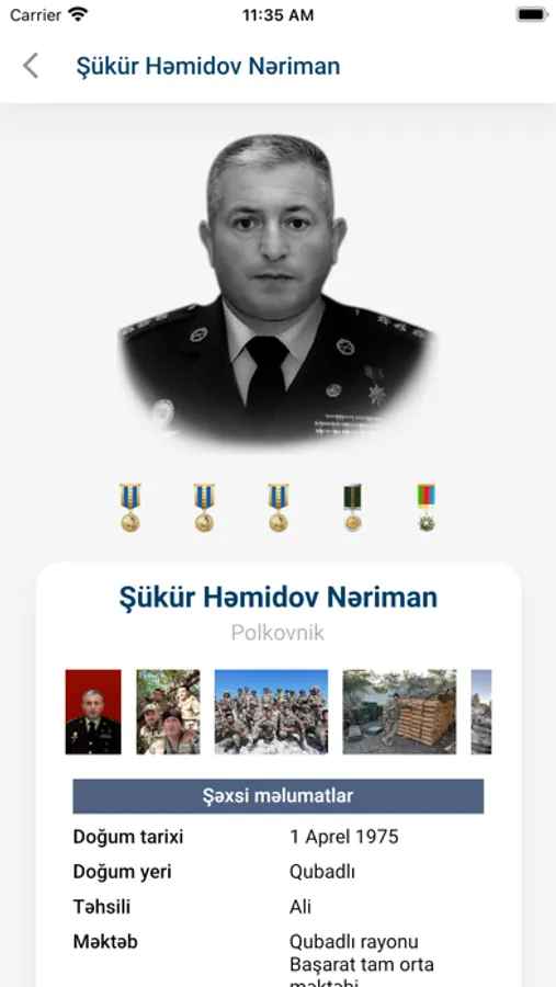 Mobil tətbiq Sizə, şəhidlər haqqında geniş məlumat almağa, onların döyüşdüyü yerlər, aldıqları medallar, şəkilləri və videoları izləməyə imkan yaradır.
