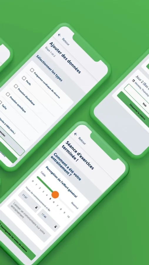 - Consultez vos programmes d'entraînement et remplissez vos séances directement à partir de l’application.