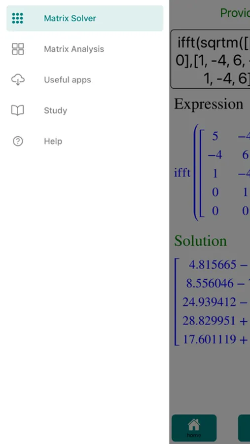 This app has tools to help you analyze matrices like finding eigenvalues and eigenvectors, diagonalization, QR, SLU, LU factorization.