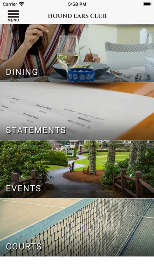 Delivering the ability to connect Hound Ears Club to your mobile device. The Hound Ears Club app provides members with the ability to view their Statements, make Dining Reservations and even book Tee Times. Use the Roster to connect with other members, all by the way of your handheld or tablet.