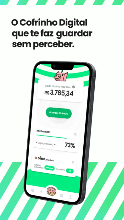Ao assinar o Oinc Premium por R$ 3,90 por mês você pode guardar dinheiro de forma recorrente através do cartão de crédito com o Cofrinho Automático e também arredondar e investir o “troco” das suas compras com a funcionalidade do Trocadinho.